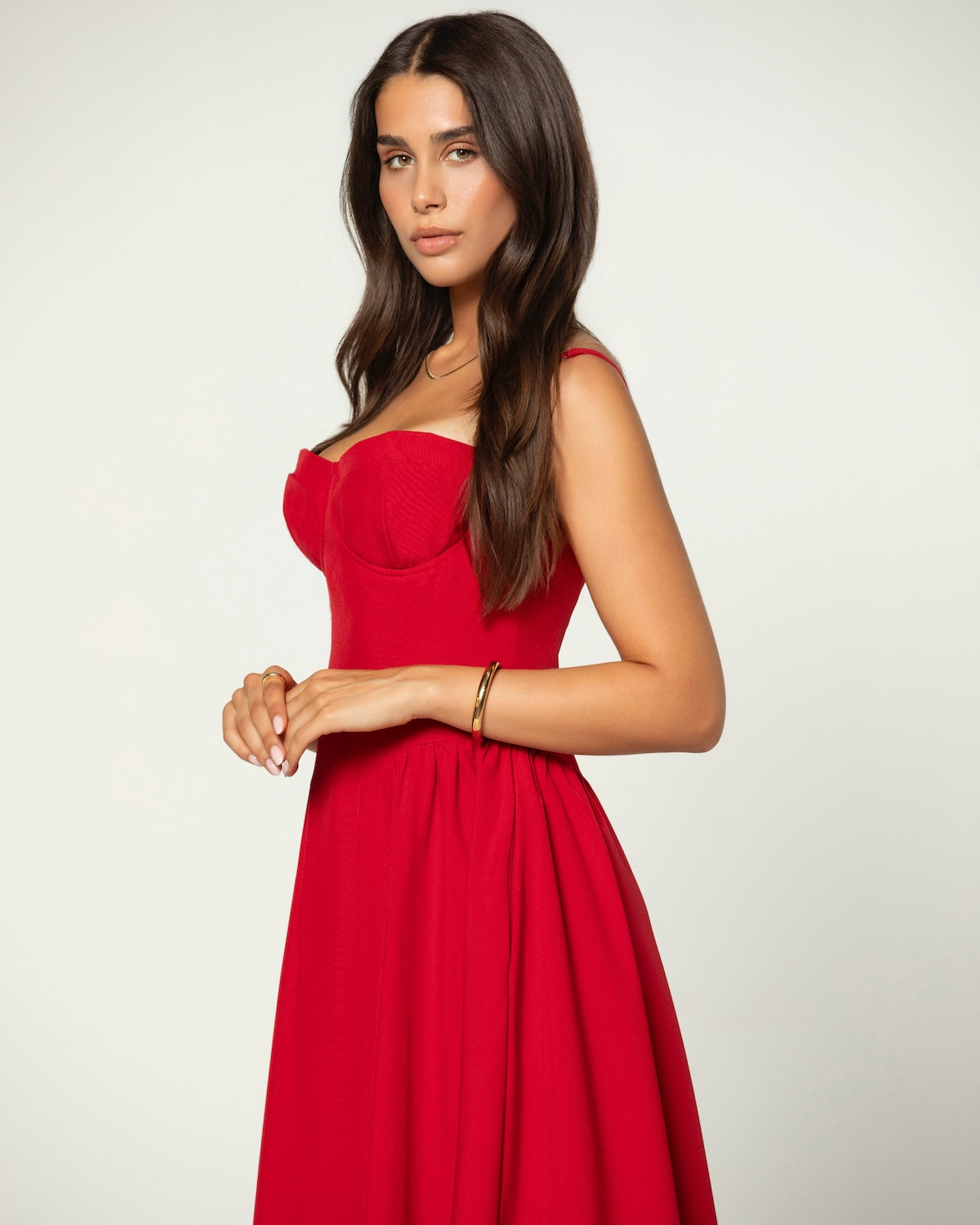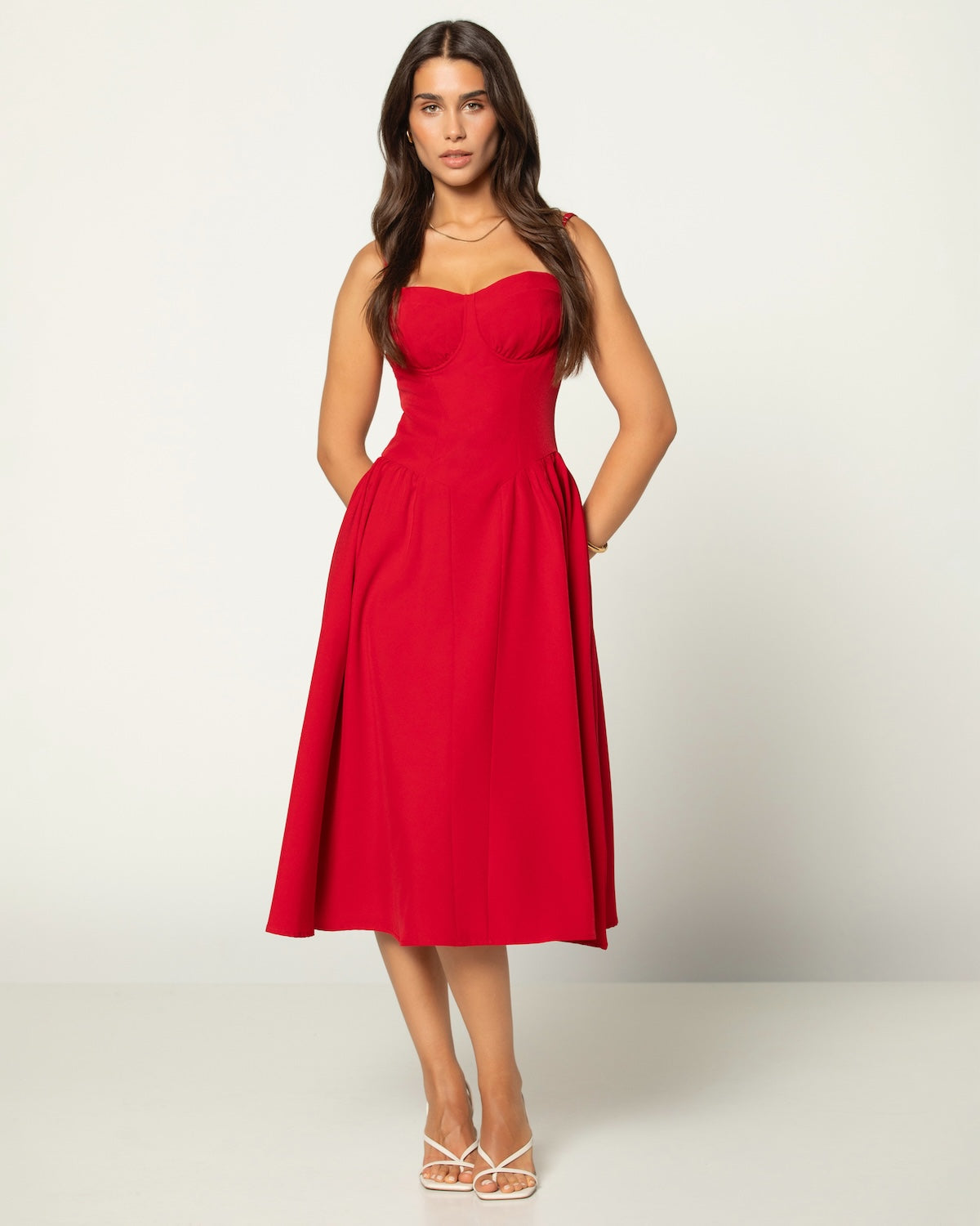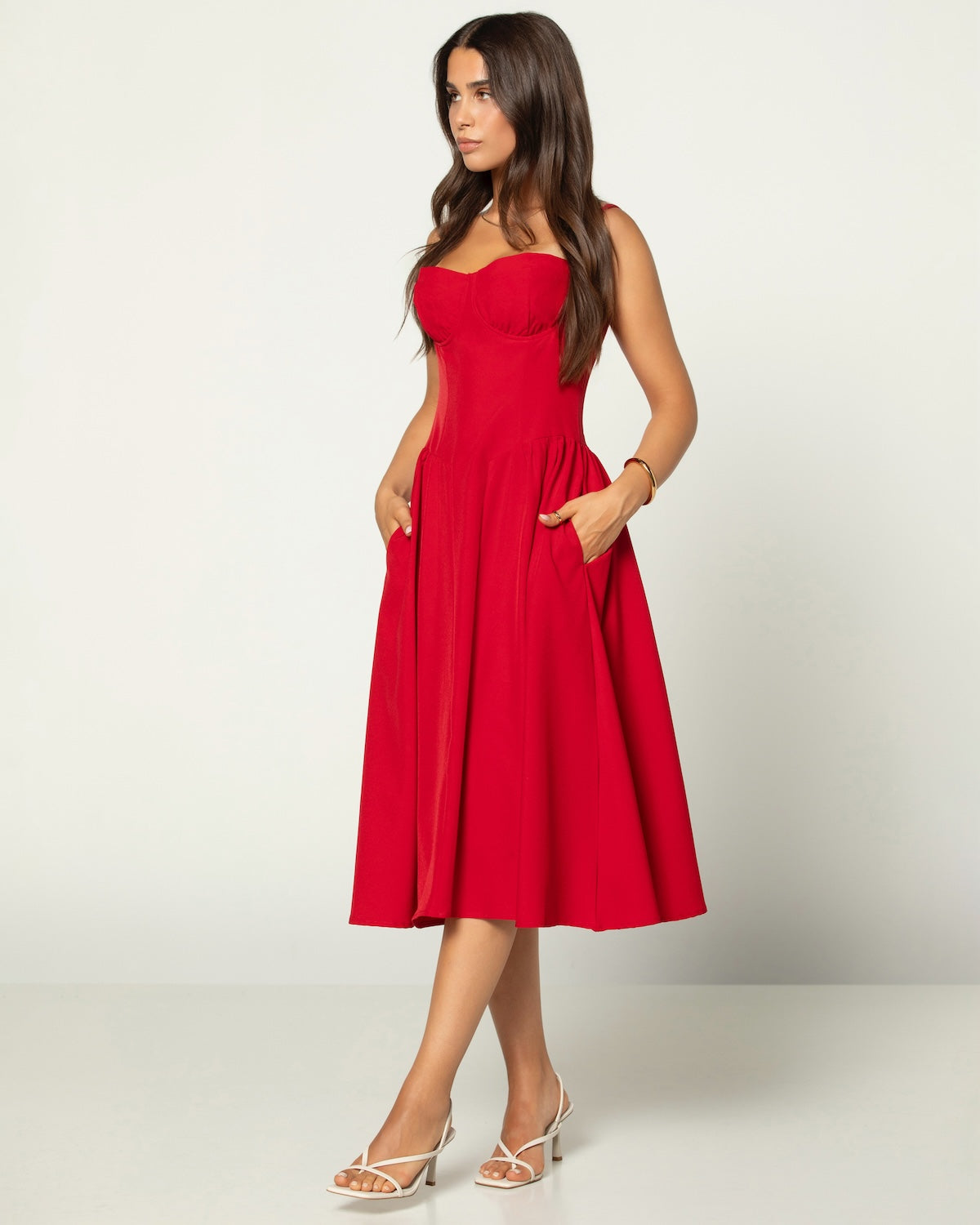 Scopri 'Francesca', il tuo essenziale estivo definitivo! Realizzata in tessuto twill traspirante, questa meraviglia presenta stecche nel corpetto per una silhouette snellita e una scollatura a cuore con coppe imbottite per un supporto extra. Le spalline sottili regolabili garantiscono una vestibilità perfetta, mentre la gonna midi arricciata aggiunge un tocco di volume e femminilità.