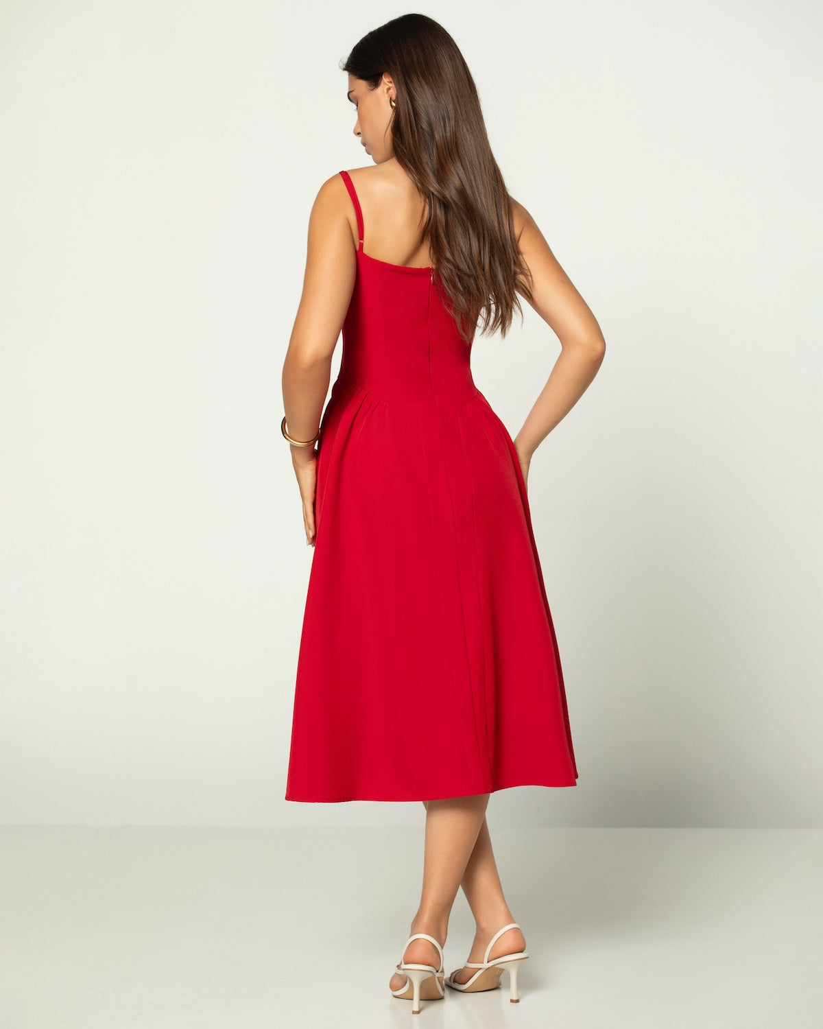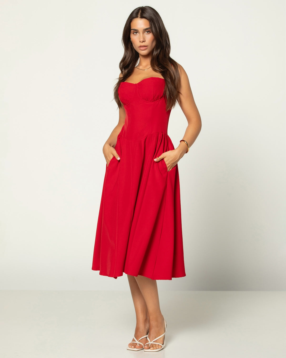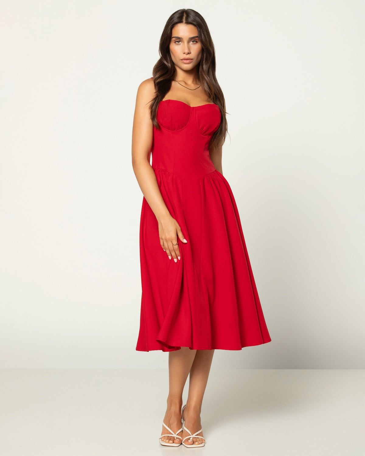 Scopri 'Francesca', il tuo essenziale estivo definitivo! Realizzata in tessuto twill traspirante, questa meraviglia presenta stecche nel corpetto per una silhouette snellita e una scollatura a cuore con coppe imbottite per un supporto extra. Le spalline sottili regolabili garantiscono una vestibilità perfetta, mentre la gonna midi arricciata aggiunge un tocco di volume e femminilità.